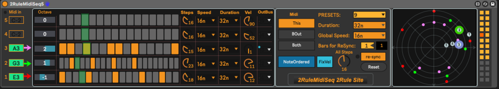 2RuleMidiSeq is a polyphonic arp and seq variable note beats.